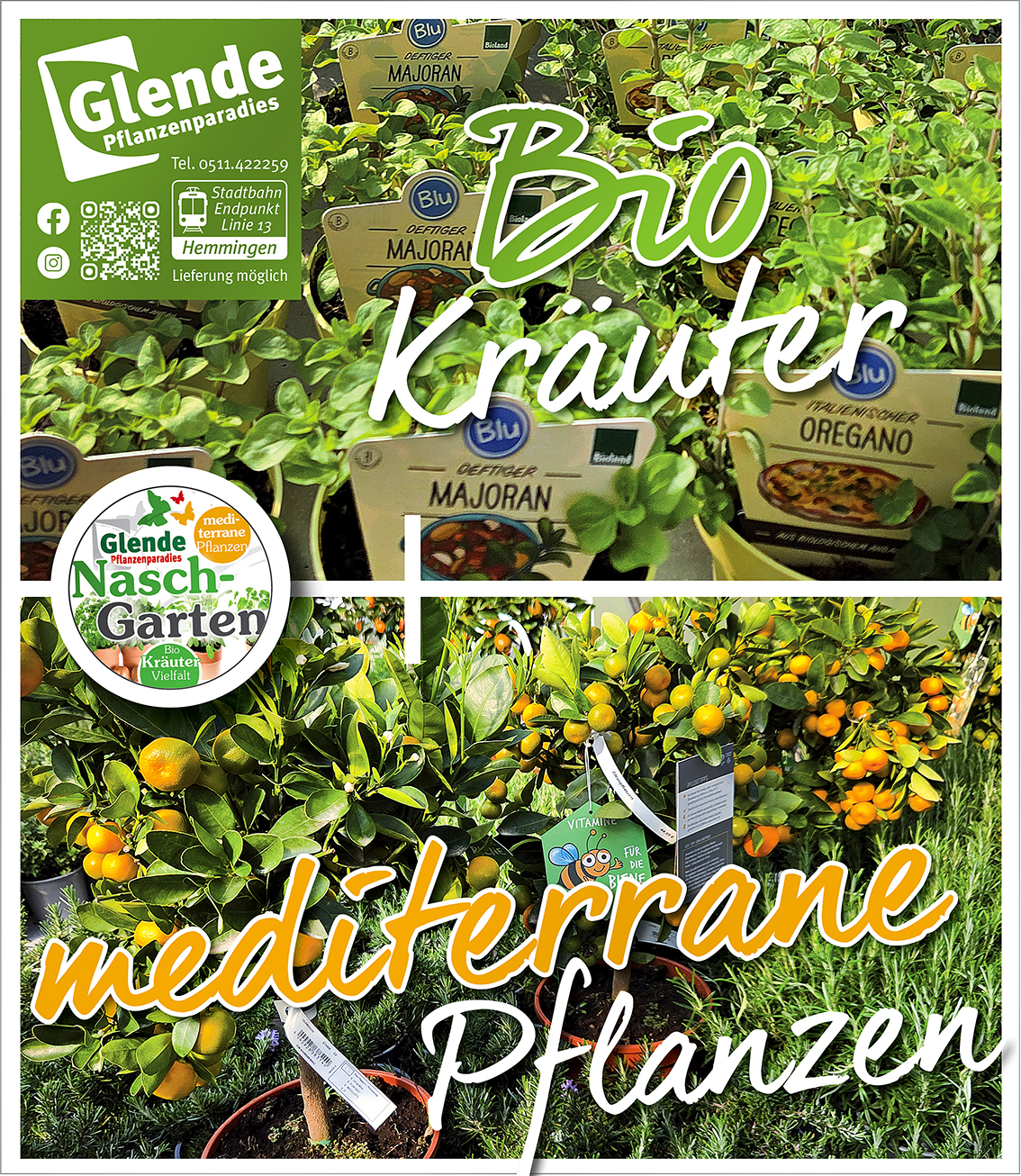 Dann haben wir jetzt genau das, was das Lebensgefühl und die gesunde Ernährung der südlichen Gefilde vereint. Unsere große Auswahl an mediterranen Kräutern – auch in Bioqualität – sowie verschiedene Stämmchen wie z.B. Zitrone, Orange oder auch Olive verbreiten Urlaubs-Flair auf Balkon sowie Terrasse und bieten gleichzeitig beste Zutaten für die gesunde Küche Südeuropas.